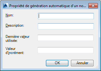 - Dans la boîte de dialogue Propriété de génération automatique d'un nouveau projet, effectuez les opérations suivantes :