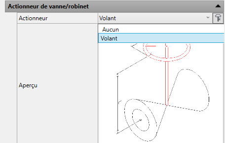 Dans la liste Actionneur de vanne/robinet, cliquez sur un actionneur (p. ex. Volant).