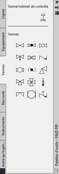 Si vous utilisez des composants et des lignes qui ne font pas partie des bibliothèques de symboles fournies avec le logiciel, ces symboles ont probablement été créés et ajoutés à la palette d'outils par votre administrateur lors de la configuration du projet.