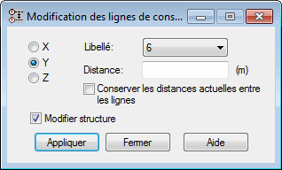 Après la sélection d'un groupe de ligne de construction, l'affectation d'un nom à l'axe sélectionné et la définition d'autres options, la ligne de construction est modifiée.