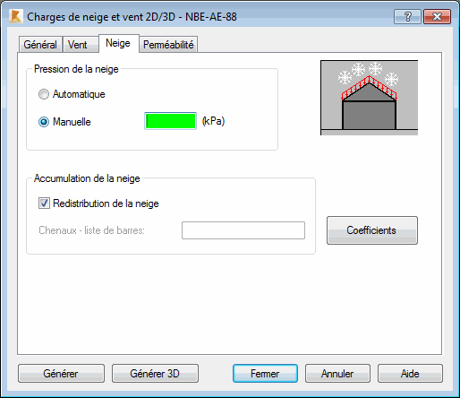 Un clic sur le bouton Coefficients ouvre la boîte de dialogue dans laquelle vous pouvez définir les coefficients pour les charges de neige.