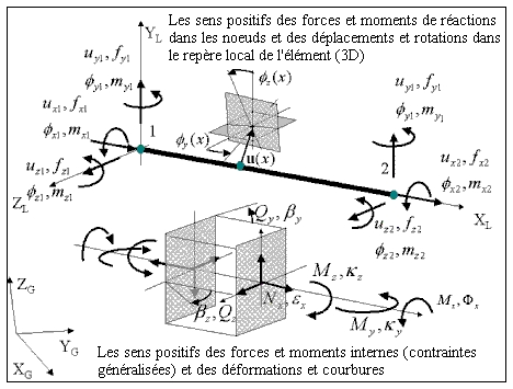 Les hypothèses suivantes ont été adoptées pour les éléments de type barre(poutre) :
