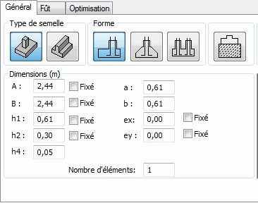 L'onglet Général permet de définir le type de semelle et ses dimensions de base.