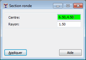 Cette option permet de définir des cercles graphiquement ou en tapant les coordonnées des points dans les champs d'édition appropriés de la boîte de dialogue Section ronde.