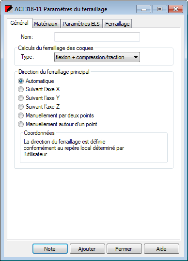 L'onglet Général permet de définir les paramètres d'armature de base des plaques et coques.