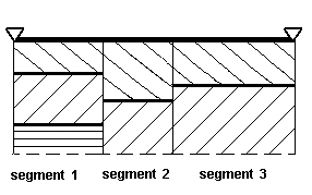 Le sol qui se trouve au-dessous de la poutre sur sol élastique peut être divisé en segments qui se caractérisent par la stratification différente. Cette situation est présentée sur la figure ci-dessous. La géométrie du segment est définie par les coordonnées de l'origine et de l'extrémité du segment dans la partie supérieure gauche de la boîte de dialogue.