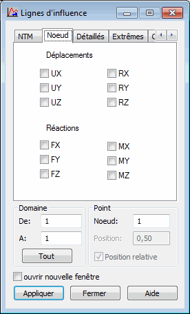 Lorsque vous sélectionnez l'onglet Nœuds dans la boîte de dialogue Lignes d'influence, les informations suivantes s'affichent.