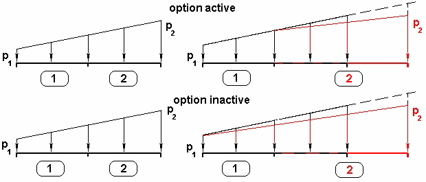 Conseil : Sélectionnez cette option si, après l'application d'une charge, la géométrie des barres de la structure soumises à l'action des modifications de charge trapézoïdale ou les valeurs de la charge trapézoïdale à l'origine ou à l'extrémité d'une chaîne de barres (valeurs de charge p1 ou p2) changent.