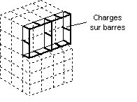 Les figures suivantes représentent des exemples d'une surface sollicitée par une charge et de charges générées sur des barres transférant la charge à partir du plan défini.