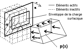 Ces informations sont utilisées pour générer la charge répartie de façon linéaire appliquée aux barres participant au transfert de la charge, la charge linéaire est un système de forces statiquement équivalent à la charge appliquée à un plan.