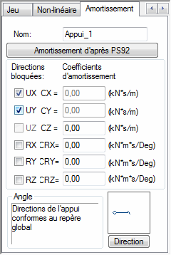 Après la sélection de l’onglet Amortissement, la boîte de dialogue Définition d’appui affichée à l’écran prend la forme suivante :