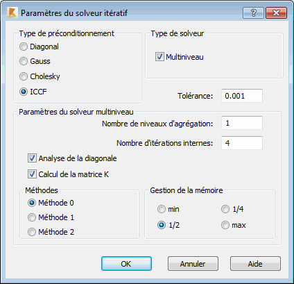 Paramètres du solveur itératif - informations générales