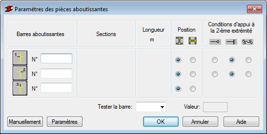 Dans la partie inférieure de la boîte de dialogue, vous pouvez vérifier quelle sera la valeur du coefficient de flambement après la mise en place de la barre aboutissante dont le numéro est sélectionné. Après la sélection du numéro de la barre aboutissante, la valeur du coefficient de flambement s'affiche dans le champ Tester la barre.