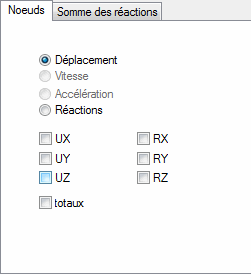 L’option Totaux est disponible uniquement après la sélection de l’option Déplacement. Les options Vitesse et Accélération sont disponibles seulement pour le cas de l’analyse temporelle.