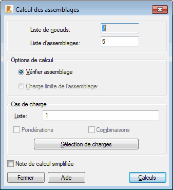 Cette option sert à sélectionner les options de calcul et les cas de charges qui seront pris en compte lors du calcul de l’assemblage étudié.