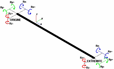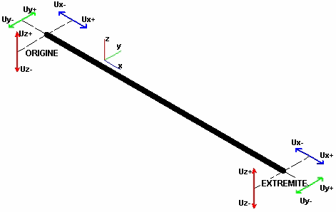Par exemple, pour affecter à la barre présentée ci-dessus un relâchement à la suite duquel la barre travaille en traction seule, il faut saisir le relâchement sur la direction Ux+ à l’origine ou Ux- à l’extrémité de la barre.