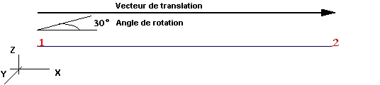 Pour la barre en question, l’opération de transformation multiple sera effectuée (translation + rotation, cf. la figure ci-dessous). Les paramètres d'édition suivants sont utilisés dans l'exemple :