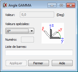 Ouvre la boîte de dialogue Angle GAMMA qui sert à modifier l’orientation des axes locaux d'une section de barre, à l'aide de l'une de ces méthodes :