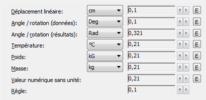 pour définir le nombre de chiffres après le symbole décimal pour chaque unité de mesure. Cliquez sur le bouton E pour basculer entre les formats décimal et exponentiel.