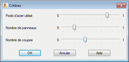 Pour chacune des options ci-dessus, vous disposez d’un curseur qui permet de déterminer le coefficient d’importance des critères d’optimisation. Cette option peut prendre les valeurs de l'intervalle <0, 1> ;