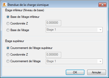 L'étage inférieur (niveau de base) sépare la partie de la structure qui est considérée comme étant souterraine. Au-dessous de ce niveau, les forces sismiques ne sont pas prises en compte.