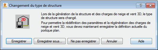 Remarque : Robot exige que le projet soit enregistré après le changement du type de la structure. Par conséquent, si un portique 2D n'a pas encore été nommé, Robot ouvre la boîte de dialogue Enregistrer sous. Une structure 3D est enregistrée sans les charges 3D.