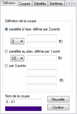 La coupe définie sera ajoutée à la liste de coupes disponibles affichées dans l’onglet Coupes.