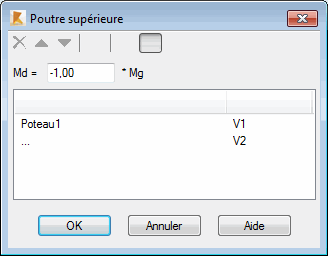 Dans le menu du module Armature du poteau BA, l’option Poutre supérieure est disponible. Après la sélection de cette option, le logiciel affiche la boîte de dialogue dans laquelle vous pouvez sélectionner une seule poutre de la liste des poutres définies.