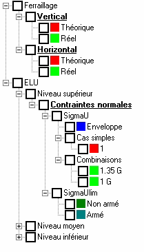 L’option Voiles - résultats (diagrammes) permet de présenter les résultats du dimensionnement des voiles BA. Cette option est disponible par la sélection de :