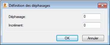 Dans le champ d’édition Déphasage, vous devez saisir la valeur initiale du déphasage. La valeur du paramètre de l’incrément définit le nombre d’itérations effectuées lors de la modification du déphasage. Par exemple, si l’on prend 5 comme valeur de l’incrément, cela signifie que si la convergence de la valeur propre quelconque n’est pas atteinte en 5 itérations, la valeur du déphasage sera changée suivant la formule ci-dessous :