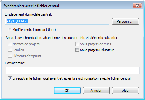 Le workflow d'un partage de projet basé sur un fichier est très similaire à celui d'un partage de projet basé sur un fichier. Les processus d'activation des sous-projets, de synchronisation avec le fichier central, de rechargement des dernières modifications apportées au modèle central et d'abandon de la propriété des sous-projets sont identiques.