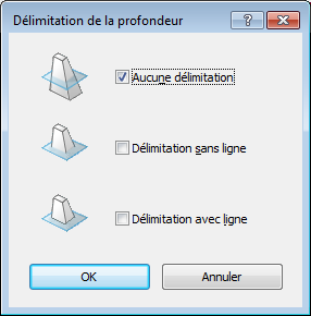 - Dans la boîte de dialogue Délimitation de la profondeur, sélectionnez une option, puis cliquez sur OK.