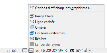 Pour définir l'arrière-plan d'une vue 3D, dans la barre de contrôle Vue, cliquez sur l'icône de style visuel et cliquez sur Options d'affichage des graphismes.