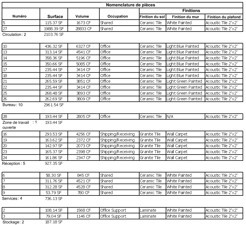 Toutes les nomenclatures sont automatiquement mises à jour lors de la modification du projet. Si, par exemple, vous déplacez un mur, la superficie est mise à jour dans la nomenclature des pièces.