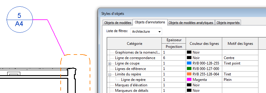 Pour modifier le style de ligne des bulles de détails et des lignes de repère