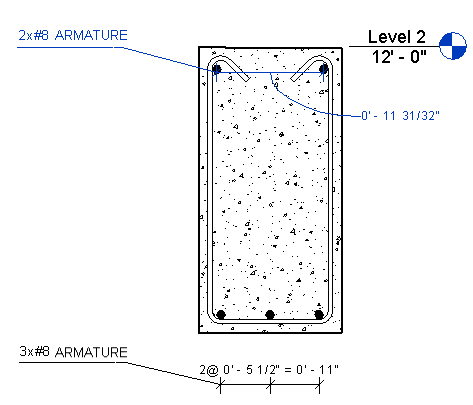 Avec les annotations multi-armature, vous pouvez sélectionner plusieurs armatures alignées et afficher les cotes entre les références d'armature, ainsi que les données de paramètres.