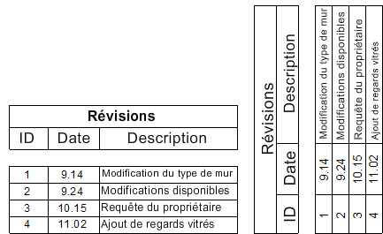 Nomenclature de révision horizontale (gauche) et nomenclature de révision pivotée (droite)