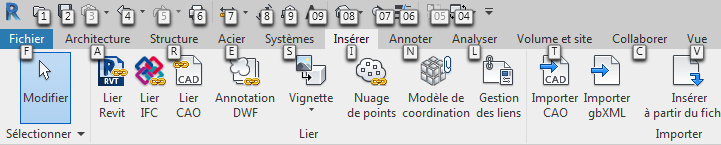 Les touches d'accès rapide permettent d'accéder au menu de l'application, à la barre d'outils d'accès rapide et au ruban à l'aide du clavier.