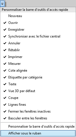 Il est possible d'afficher la barre d'outils d'accès rapide au-dessus ou en dessous du ruban. Pour modifier ce paramètre, sur la barre d'outils d'accès rapide, cliquez sur la liste déroulante Personnaliser la barre d'outils d'accès rapide