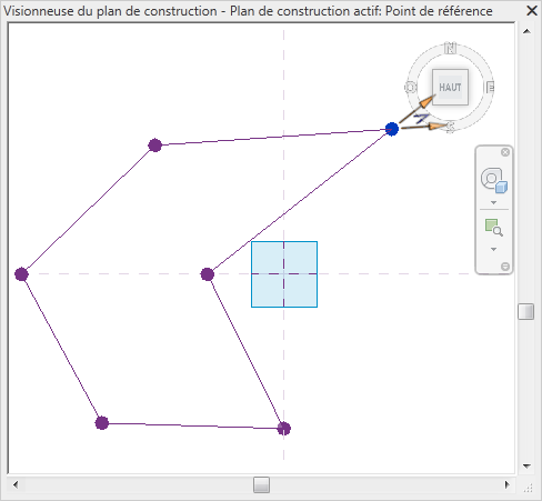 La visionneuse du plan de construction est disponible dans toutes les vues de modèle au sein de l'environnement de projet. L'orientation par défaut correspond au plan de construction actif de la dernière vue active.