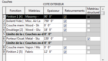 Rangée de couches : correspond à des couches ou à des zones de mur