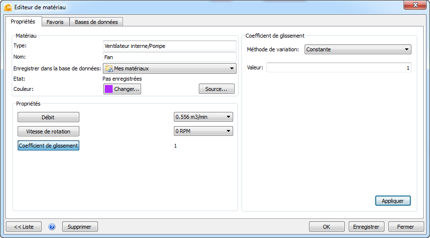 Sélectionnez Mes matériaux à partir du menu Enregistrer dans la base de données .