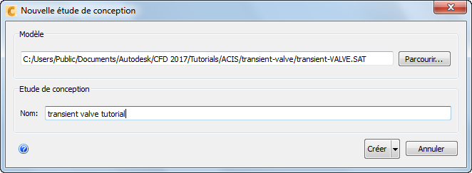 Dans la boîte de dialogue Gestionnaire de fichiers, accédez au dossier Utilisateurs\Public\Public Documents\Autodesk\CFD 2019\Tutorials\<type de fichier>\transient-valve.