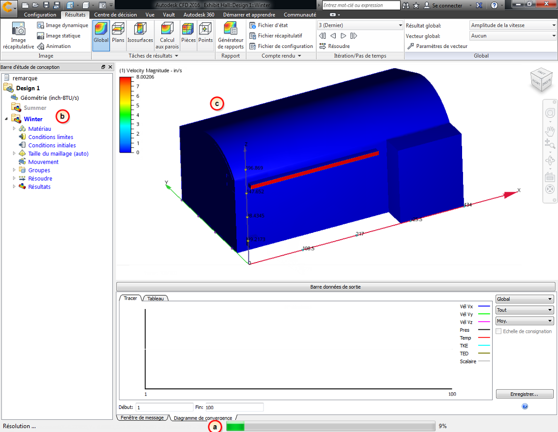 - c. Autodesk® CFD affiche les résultats à mesure qu'ils sont calculés.