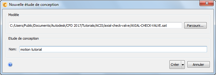 Dans la boîte de dialogue Gestionnaire de fichiers, accédez au dossier Utilisateurs\Public\Public Documents\Autodesk\CFD 2019\Tutorials\<type de fichier>\axial-check-valve.