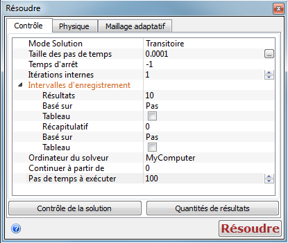 Vérifiez que Mode Solution = Transitoire et que Itérations internes = 1