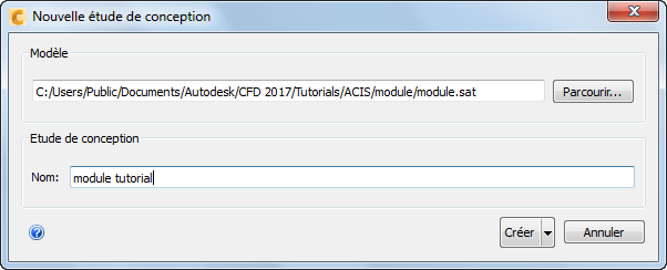 Dans la boîte de dialogue Gestionnaire de fichiers, accédez au dossier Utilisateurs\Public\Public Documents\Autodesk\CFD 2019\Tutorials\<type de fichier>\module.