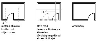 A gyakorlati példa egy ajtó mozgatása a falban. Az ajtó az illusztráción egy metsző kijelölésen belül fekszik, miközben a fal vonalai csak részben vannak a metsző kijelölési területen belül.