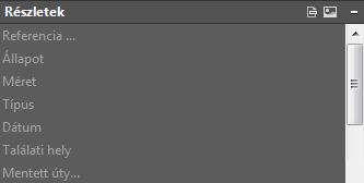 Részletek módban a kijelölt fájlreferencia tulajdonságai jelennek meg. Minden fájlreferenciának van egy alap tulajdonságkészlete, továbbá néhány fájlreferencia, például a képreferencia, az adott fájltípusra specifikus tulajdonságokat jelenít meg. A részletek legfontosabb csoportjába tartozik a referencia neve, az állapot, a fájlméret, a létrehozás dátuma, a mentett elérési út, a megtalált elérési út és a fájlverzió, ha telepítve van az Autodesk Vault kliens (az AutoCAD LT szoftverben nem érhető el). A tulajdonságok némelyike módosítható.