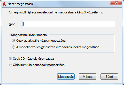 Elnevezi a megosztott nézetet. A név maximálisan 255 karakter hosszúságú lehet, és betűket, számokat, szóközöket és bármilyen speciális karaktert tartalmazhat, aamelyet az operációs rendszer és a program nem használ más célokra.